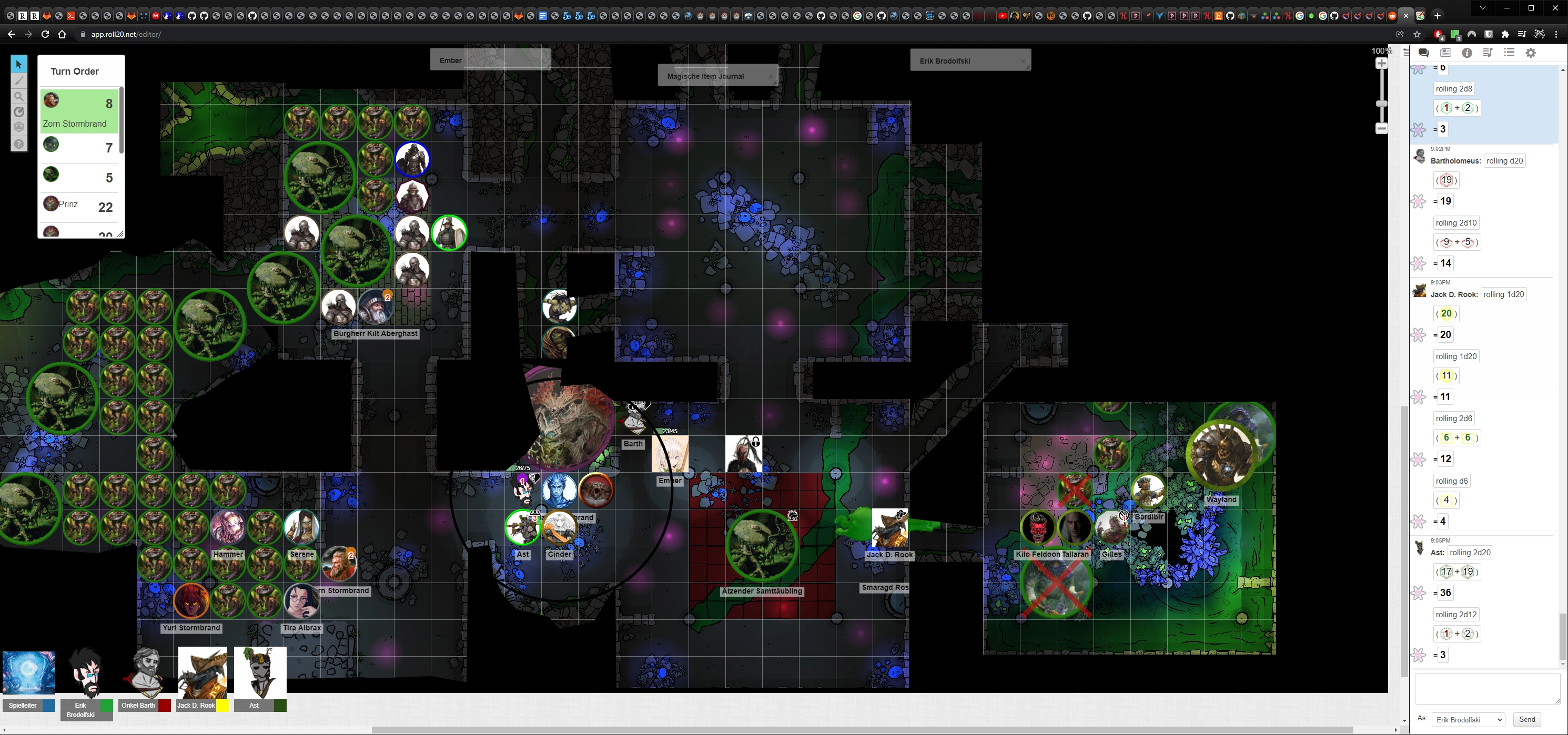 Wir brechen in den nächsten Raum, wo weitere Pilzwesen auf uns warten. Die BROS stürzen sich in den Kampf. Parallel kämpft Team Zorn im linken Nebenraum.