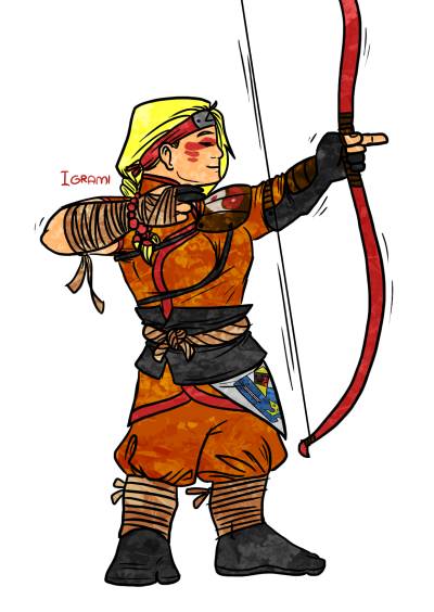 In den frühen Jahren Igramis, durfte sie wie viele andere hochwohlgeborene Zwergenkinder ihres Alters spielen, toben und kleine magische Wesen jagen. Als allerdings eine Krise ausbrach und alle Kinder in die Bergwerke mussten, um mehr Gold zu schürfen, sodass das Königreich wieder an Macht gelangte, entschlossen sich Igramis Eltern, ihre kleine Tochter in ein Kloster in einem Tal, ganz (gaaaaaaaaanz) weit weg zu verstecken. In diesem Kloster verbrachte Igrami eine lange Zeit, bis ihr die Pinguine… ähh Nonnen auf den Geist gingen. Sie beschloss abzuhauen, kam aber recht schnell zu dem Schluss, sich nicht ohne Ausbildung oder Lebenserfahrung in der Welt zurechtzufinden. So kam es, dass Igrami in einem Tempel bei Mönchen unterkam. Dort lehrte man sie die Kunst des Bogenschießens und der Jagt. Mit etwa 71 Jahren beschloss Igrami ein weiteres Mal in die freie Welt zu ziehen. Sie streifte durch Wälder und Täler, bis sie plötzlich ihre (zukünftig) beste Freundin traf. Die graue Kayal wirkte leicht verwirrt, also nahm Igrami sie unter ihren Schutz, bis Inva sich erholte.